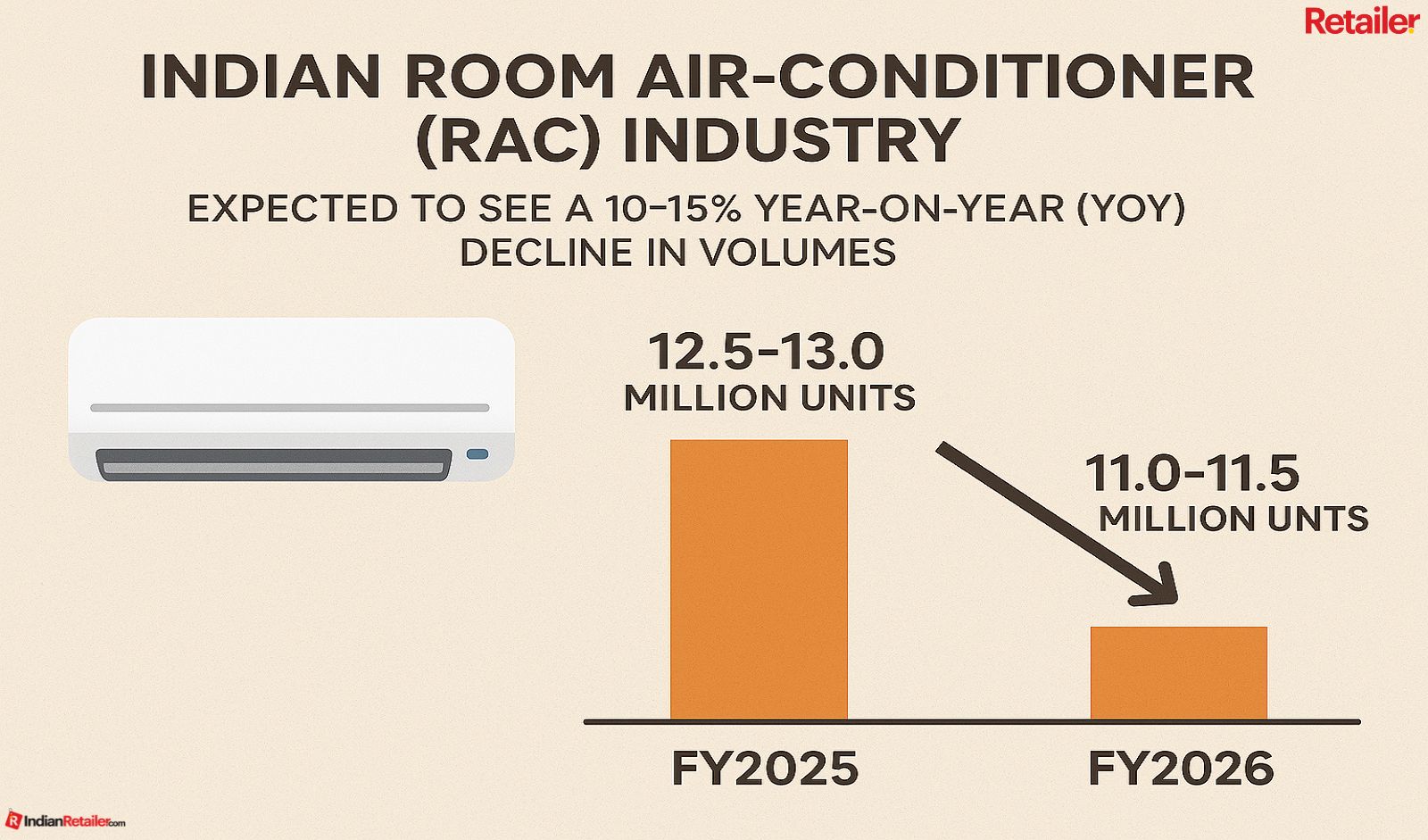 Indian Room AC Market Volumes Expected to Drop 10–15 pc in FY26